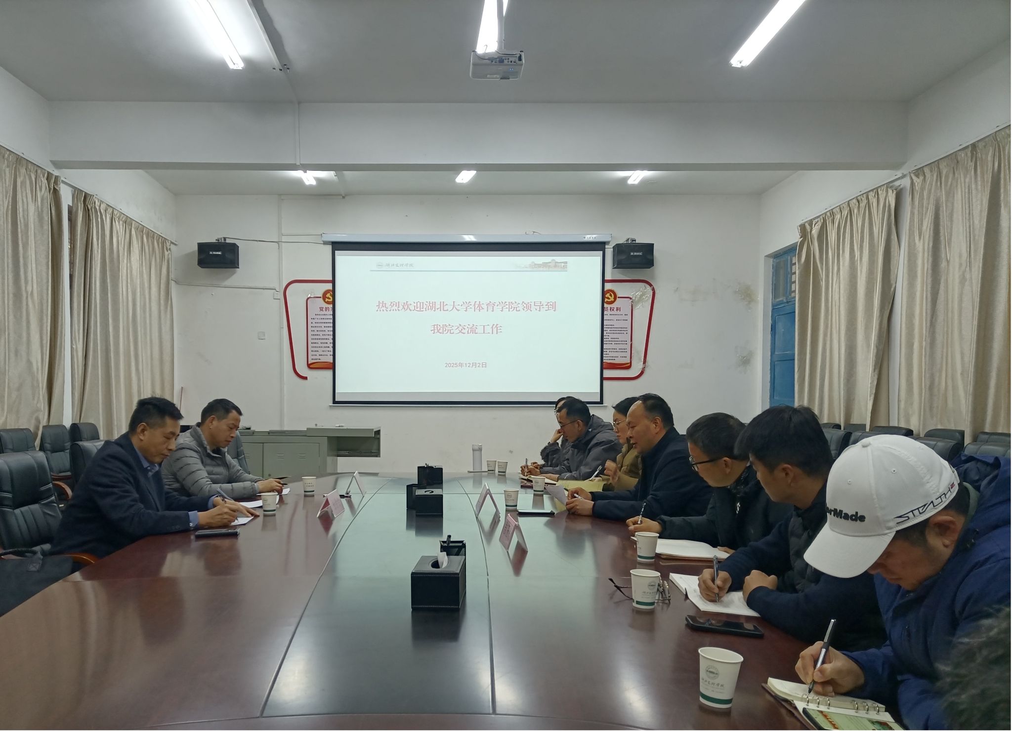 (通讯员 姜宇)为深化校际合作,促进体育学科建设与人才培养,12月2日,湖北大学体育学院院长张春合教授、副院长张强弓教授一行应邀来湖北文理学院体育学院进行学术交流。会议由湖北文理学院体育学院院长张华江教授主持,副院长吉玉良教授及骨干教师、博士代表出席。