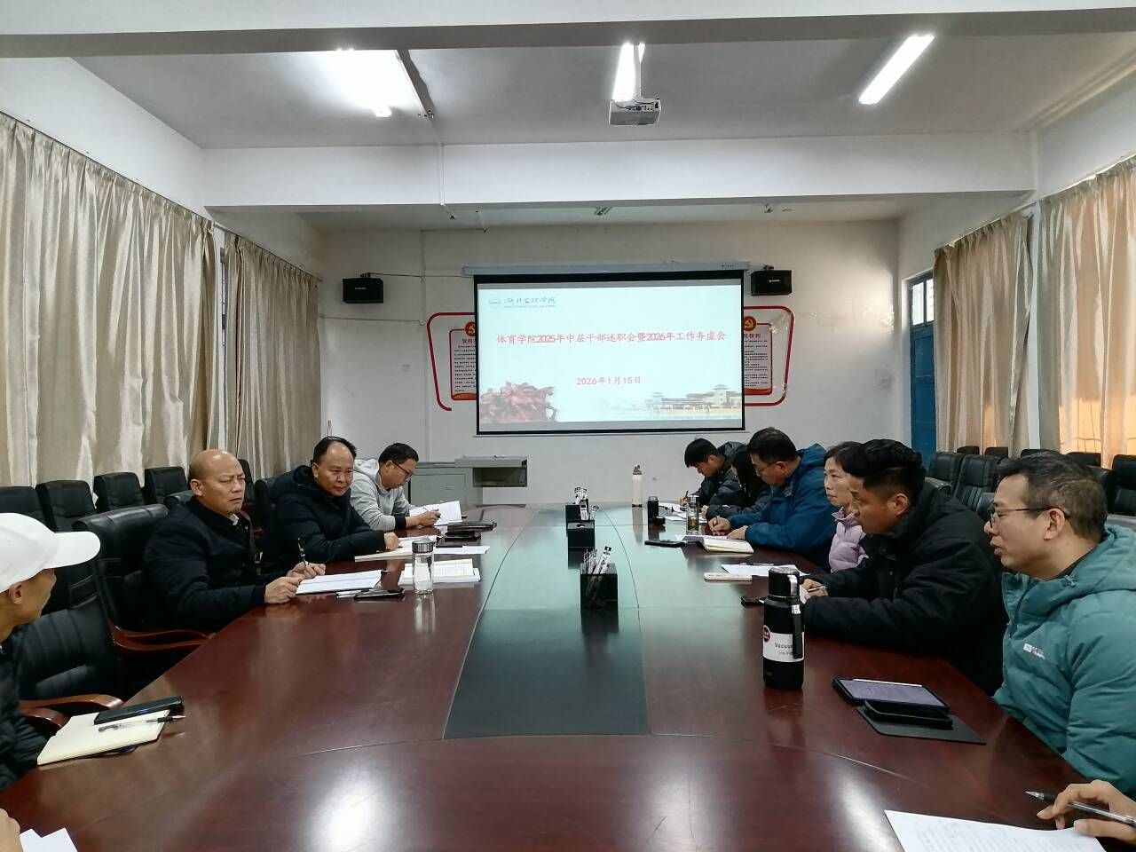(通讯员 詹中新)1月15日下午,我院在103会议室隆重召开2025年中层干部“答辩式”述职大会暨2026年工作务虚会。学院领导班子、各系部主任及书记、“四办”主任、团委书记齐聚一堂,全面复盘2025年奋斗足迹,深度谋划2026年发展蓝图。会议由院长张华江主持。